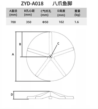 The Octopus Feet component is engineered for versatile support and stability, featuring a 50mm inner hole diameter and a 700mm overall size. With a height of 102mm and a net weight of 1.6kg, it provides a solid and dependable foundation. Its design ensures a secure fit and robust performance, making it suitable for a range of applications. The all-black finish adds a sleek, professional touch, enhancing both functionality and aesthetic appeal.