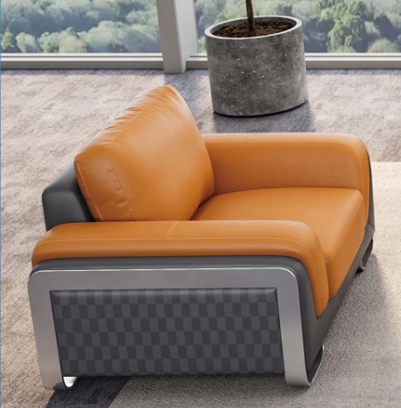 Description: This chair features a backrest and cushion made from high-quality leather and high-stretch cotton or high-elastic sponge for exceptional comfort. The handrail is upholstered in high-quality leather and high-elastic cotton. The solid wood frame is treated with four-sided polishing, drying, and deworming for durability. Manganese steel snake springs with balance line treatment ensure long-term support without deformation. The chair is elegantly supported by high-quality stainless steel wire-drawing feet.